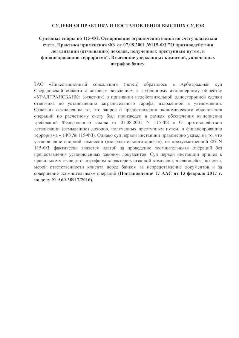 Банк УБРиР безосновательно заблокировал денежные средства в сумме 1 400 000 рублей на расчётном счёте клиента ссылаясь на ФЗ 115 "О противодействии легализации (отмыванию) доходов, полученных преступным путем, и финансированию терроризма".
